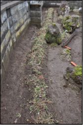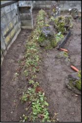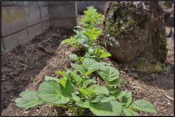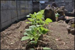 畝を立てて、約25cm間隔で30個の種芋を植付。
