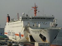 京都を昼前に出発し、JRで大阪へ向かう。さすがに日本。定刻通りに列車は進む。大阪で地下鉄に乗り換え、フェリーターミナルへ。こちらも問題はなく、フェリーターミナルに到着。途中、シャトルバスの中から、乗船するフェリーの姿が見える。でかい…。