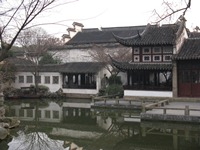 スーヂョウは世界遺産の街なので、そちらを訪ねることとする。いくつかある庭園の中で「留園」をセレクトする。しかし、場所が分からない。今回は、聞いても分からない。インフォメーションはないし、地図もない。これは困った…。 ウロウロしていると、レンタサイクル店前の歩道に小さな地図を発見する。ラッキー!!!というよりも奇跡に近い…。これで地理感覚が取り戻せたので、留園を目指してテクテク歩く。途中、スーヂョウらしい景色も見ながら、目的の留園に到着。 観光地としての「蘇州古典園林」の評価は、「★★★☆☆」である。日本人好み(本家は中国だろうけど…)の庭園である。ゆっくり・のんびりと時間を過ごしたい方にはオススメである。 さすがに、観光地としての知名度が高いスーヂョウだからか、昨日までの山東省より暖かいからか、土曜日だからか、観光客がたくさんいた。日本語・韓国語・中国語が入り交じっていた。