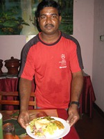 今日の晩飯は、ゲストハウスの前にあるレストランに行くことにする。宿のオバちゃん推薦の店である。今日も野菜カレー。やはり、昨日までの野菜カレーとは、まったく違うカレーだった。なんと興味深い!!! それにしても、スリランカの飯は、“米”が山盛りである。“米”が大好きなオリエント伯爵としては、嬉しい限りである。それに加えて、ここのカレーは本当に美味い。美味いものが大好きなオリエント伯爵は、嬉しい限りである!!! |