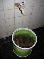 そこで、自前の折りたたみ式バケツと昨日購入した洗剤を使って、手洗いでの洗濯と洒落こんだ。う〜ん、予想以上に汚れているもんだな…。日本では、同じ下着を2日連続で着るなんてしたことがなかったけれど、旅に出てからはそんなことも言っていられないもんな…。心身だけでなく、モノだってハードな60日間を送ってきたんだな〜と実感するオリエント伯爵でした。