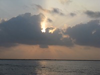 係官に詰問されることもなく、朝を迎えることとなった。都合の良いことに、テレビではサッカーの試合を放送していたので、朝まで飽きることはなかった。空港ではシャワ−を浴びることもできるので、ちゃっかりと利用させてもらった。こうしてみると、なかなか充実した一夜だったように思える…。 6時頃に、やっと空が明るくなり始めた。マレ島も見えてきた。よし、マレ島に移動しよう!!! 船着場に行き船賃を聞くと、10モルディブ・ルフィアか1アメリカ・ドル…。あまりにも、アメリカ・ドルだと不利な価格設定…。1アメリカ・ドル=15モルディブ・ドルぐらいが相場なのに…。そのように価格が決まっているようで、交渉の余地はない(してみたけれど…)。ATMがカードを受け付けてくれていたら…。