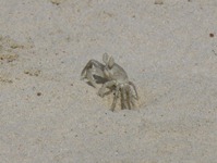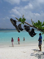 昼過ぎに食事を摂った後、ビリンギリ島へと向かう。この島は、旅人が自由に立ち寄ることができるリゾート以外の数少ない島の1つである。マレ島を発った船は、あっという間にビリンギリ島へと到着。信じられないくらいに揺れたけれど…。 ビリンギリ島には、小さいながらもビーチがあり、地元の方々がひっきりなしに訪れていた。ビーチをテクテク歩いていくと、めっきりと人がいなくなる。奥に進んだのだから、当たり前といえば当たり前…。 そこで見つけました“隠れ家的ビーチ”!!!両側に草木が茂っていて、4畳半くらい(広さの単位が日本人だな…)のプライベート・ビーチのようである。そこで、のんびりと時間を過ごしていると、なんなとく波音が近づいてきているような気がする。満潮かな??? 真偽のほどは定かではなかったものの、帰るときにベチャベチャになるのは避けたかったので、違う場所へ移る。先ほどの場所よりもゴミが多かったので、簡単に“お片づけ”!!!なかなか、良い感じになった!!!