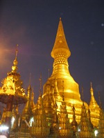 話を旅に戻そう。アウンサン親子のグッズ販売店を後にした一行は、シュェミェッマン・パヤーへと向かう。“メガネをかけた大仏”があることで有名な寺院である。この寺院前で日本語教室の生徒さんにご馳走になった“棒にささったかき氷”は、今まで食べたかき氷の中で最高ランクの一品であった。 夕方になり、昼間とほぼ同じメンバーで、ピィの街中にあるシュエサンドー・パヤーに行く。満月が近いということで、この寺院でもお祭り!すごい人出だった!この寺院では、誕生曜日ごとにお参りする場所が違うようで、地元の方に混じってオリエント伯爵も自分の誕生曜日の場所でお参りをする。 ピィでの最後の夜は、屋台街で食事。いつものことながら、美味いんだよね〜!!!ピィでの食事はU先生にご馳走になりっぱなしだったので、最後の夜こそは少しばかりでも支払おうとするも、U先生から「大丈夫」との一言…。オリエント伯爵とは“役者が違う”…。と思っていたら、この日の支払いは、日本語教室の生徒さん(の親御さんとスィー・トゥさんも)が支払ってくれたとのこと。オリエント伯爵とは“役者が違う”…。