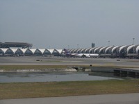この旅では、ミャンマーが4つ目の空港となる。残念なことに、この空港でペットボトルを没収されてしまう。液体は入っていないのに…このような対応を日本では「杓子定規」と言うのだよ(怒)!!! 日本製のペットボトルで水筒の代わりに重宝していたのに…。もちろん、抗議をしてみたものの、偉そうな女性が上から目線の対応。「お前は日本人か?」と聞くので「そうだ」と答えると、「ダメダメ」と返ってきた。あのね〜「NO」の意味が分からないはずないでしょ…。おそらく、ルールはルールなので、怒ったところで「お門違い」なのである(笑)!!!今後は、預ける荷物に入れることにしよう。 飛行機は若干遅れてバンコクに到着。なんと近代的な空港なんだ。着陸後、「ORIENT