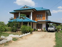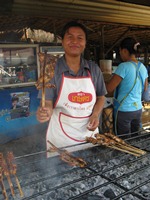 GO。タイからラオスに自家用車で入国する場合には、一時輸出となるとのことで書類申請のために役所による必要がある。こうしたことも、旅をしないと分からない(旅をしているだけでは分からないかな…)ことである。 タイの方は地元の事情に詳しい。ここの名産は焼き鳥。ここの名産はスイカ。ここの名産は肉まん。と、スリンから役所経由で国境まで、名産品を教えてくれる。当然、一時停止して食することに!!! 日本では「名物に美味いものなし」などと言いますけれど、タイでは名物は美味かったです!!!名産品ツアーの終了とともにイミグレーション到着。