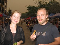 夕暮れ時、本日も、Ryoさん&Namさんと夕食をともにすることに。待ち合わせ場所で待っていると、フィンランド人のヨンッネッさんと再会。今日はガールフレンドと一緒だ。