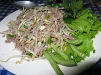 ヨンッネッさんたちと別れた後、Ryoさん&Namさんと合流。本日の夕食は、ラオス料理の王道とも言える“ラープ”を食する。これが、予想を超えて美味い。もちろん、完食。資金が許せば、もう1人前食べたかった…。