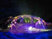 胡さんからメールが来ていたので返信を書く。すると、今日の夜に友達とパフォーマンスを見に行くので、一緒に行きましょうとのお誘いがかかる。なんの予定もないので、もちろん快諾。 またまた、胡さんのお母さんの運転する車で、胡さんと友人2人とオリエント伯爵でパフォーマンス会場へ向かう。車は山の中へと向かっていく。なんと、明日行く予定の世界遺産地区が会場とのこと。 車を降りると、すごい数の人・人・人・人。オリエント伯爵にも、この雰囲気が日本語的な“パフォーマンス”ではないことは感じられる。思ったとおりに、いや、思った以上に完全な劇場であった。日本語的には“演劇鑑賞”である。 しかも、胡さんの一族は土地の名士なのか一行はVIP待遇。並ぶこともなく、席も一般の方々とは違う場所。すごすぎる…。 演劇は素晴らしかった。ストーリーは伝説を基にしたもので、有名な話のようである。旅の途中で、このような本格的な芸術にふれることができるとは予想だにしていなかった。