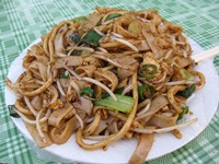 昼飯は、宿の近くの小さな店(スペース?)に入ってみる。八宝菜の具を丼に、それと小麦粉をこねて焼いたパサパサのパンみたいなものを注文(みんな、これしか食べていない!)。 やっぱり、ここは“小麦文化圏”だった。野菜はたっぷりだし、丼の汁気とパン(みたい)のパサパサが絶妙なコンビネーション。なにより、美味かった。 列車の時間が近づいてきたので、宿を後にする。西安駅に行く途中のストリート・レストランで晩飯を食する。今日は、素直に麺にする。昨日のコメと比べると、格段に味はアップした。やっぱり、“小麦文化圏”なんだなあ〜。 |