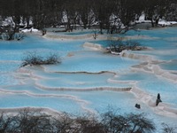行き先を決めないままにチェックアウト。約2キロの道のりをバスターミナルへと向かう。「何とかなるかな〜」という、なんの根拠もない思いを頼りにファンロン行きをセレクトする。その方が、距離的に重複が少ないのだ。結果的に、このセレクトは大正解!!! バスに知った顔が乗り込んでくる。チョンドゥからチウチャイゴウに向かうときに、休憩地点ですれ違って挨拶を交わしたイングランド人である。観光客は同じようなところを巡っているので、こんな偶然が起こるのだ。 バスはファンロンへと向かう。景色は素晴らしかった。しかし、外は完全に冬…しかも雪まで降ってくる始末…。ファンロンは山なので、北海道のスキー場に向かっている気分になってくる。スキーをするには、あまりにも軽装だけれども…。