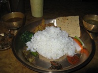 この日の昼飯は、ダルバート。ついに、ネパール料理の代表格とでもいうべき料理を食する。日本人的には“カレー”。しかし、日本のカレーとは違う…はずである。正直、スリランカでも毎日カレーだったので、日本のカレーが、どんな感じだったのかを忘れてしまった…。記憶が混ざっちゃった!!!