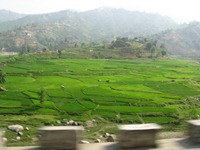 驚くほど順調に、バスは走る。出発だって、10分くらいしか遅れなかった(南アジアですから!すごいことですから!)。カトマンズの街を抜けると、山肌を縫って道が造られている。反対側は川なので、落ちた時には“痛い”では済まない…。 実際に、ネパールでは、バスが転落することが珍しくないようだ。先日も、カトマンズ〜ポカラという、旅人にとってのメインルートでバスが転落したようだ。ちなみに、数日前は、飛行機も堕ちたそうだ。 山岳地帯から丘陵地帯へとバスは走っていく。いきなり景色が変わるわけではないけれど、徐々に、谷が浅くなり視野が開けることが多くなっていく。棚田(ライス・テーブル)のテーブルの面積が大きくなり、棚の段差も低くなっていく。素晴らしい景色が続く。 バスはタライ地方と呼ばれる平原部にたどり着く。ここまで来ると、カトマンズ周辺との景色の違いは明らかである。そして、気温が確実に上がっていることも分かるようになる。「暑いぃぃぃ〜」。東南アジア以来の感覚が戻ってくる。
