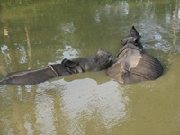 約2時間近くのエレファント・サファリ。オリエント伯爵が見ることができた哺乳類は、サイ・シカ・サル・ヒトの4種類。野生のシカは北海道でも嫌というほど見てきたので興味なし(エゾシカの方が大きく見ごたえアリ)。野生のサルは横入りの得意な人のいる国で嫌というほど見てきたので興味なし。ヒトはあちことで嫌というほど見てきたので興味なし。 そんなわけで、サイ以外の3種類の哺乳類に興味はない。肝心なのはサイである。この世界遺産、オリエント伯爵基準では観光すべきスポットである。しかし、そんな基準を超えて、オリエント伯爵は野生のサイが見たいのである。サイは…沼に入浴中で迫力ゼロ。 観光地としての「チトワン国立公園」の評価は、「★★★☆☆」である。当然に、この評価は“運”によって大きく左右される。時にはトラを見ることもできると言っていた。万が一、トラなんかを見ることができれば、評価はグンとアップするだろう。ただし、オリエント伯爵の感覚では、トラを見ることができる可能性は限りなくゼロのように思えた。 また、アクティビティの選択や、チトワン国立公園に求めるものの違いによっても評価は大きく別れるだろう。いずれにしても、評価はオリエント伯爵個人の判断なので…。見方を変えれば、オリエント伯爵イチオシであるサイがイマイチだったのに、この評価をしているということは、チトワンのポテンシャルは高いともいえる。