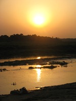 エレファント・サファリを以って、チトワンでのアクティビティは終了した。当然、暇になるので、ビールを飲んで、お昼寝ZZZ…。 夕方になって、Shiiさんが宿を訪ねてくる。一緒に、チトワンの夕陽を見に行く。昨日と違って今日は晴れているので、サンセットをバッチリと堪能する…でも男2人(笑)!落ち着ける場所ではないことが、男2人にとっては好都合。ビールを飲みながら、喋って笑っていても誰からもお咎め無し!!! 夕食後に、再度、Shiiさんが訪ねてくる。Chefさんに教えてもらっていた“ククリ・ラム”を2人で楽しむ。結局、22:00近くまで「飲んで・喋って・笑う」時間を満喫できた。 明日はポカラに向かうShiiさん。別れの挨拶を交わす。また、何時か何処かで再会しましょう!!! |