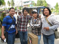 昼前に、アマルさんの兄弟と友人がバイクで到着。そのバイクに乗せてもらう。どうやら、イタハリまでは100キロ以上あるようだ。なかなかの、ロング・ツーリングである…。 アマルさんは、デカイ液晶テレビを購入してきたようで、もちろん液晶テレビもバイクに乗せることになる。バイクは2台。それぞれのライダーと、液晶テレビをホールドする人と、アマルさん。そこに、バック・パックとサブバックを持ったオリエント伯爵がお邪魔させていただくのである。当然に、不都合が生じることとなる…。