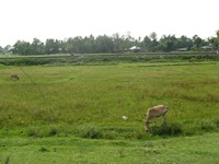 宿に戻ってバック・パックを背負い、またまたバイクでの長距離移動が始まる。昨日の比べると、液晶テレビがないだけ過酷さは軽減されたものの、快適とはいえない移動だった。 やっぱり、バック・パックの重さがコタエルね〜。なんといっても、移動距離は100キロ超えているので…。42歳には、つらいね〜。 このオッチャン、結局、ボーダーの直前まで連れて行ってくれた。お金が絡んでいたとはいえ、なかなか親切だったと思う。そんなわけで、心の準備が整わないままに、無事、ネパール出国。 国境に掛かる橋を徒歩で渡って、同じく心の準備が整わないままに、無事、インド入国。