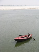 ガンガーには、人も、犬も、牛も入水していた。そして、牛の死体も流れていた。昼だからだろうか、“祈り”の要素は少なかったと思う。昼だからだろうか、観光の要素も少なかったと思う。それは、暑いから…。手持ち無沙汰の観光用のボートが、岸辺にはたくさんつながれていた。でも、どう考えても、供給過多かな…。