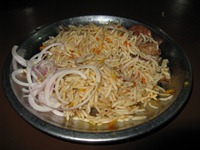 まずは、ビリヤーニ。Suuさんも「ここのメシは美味い!」とのこと。オリエント伯爵には、もちろん文句なしの味!!!昨日と同じく、400gを平らげた。