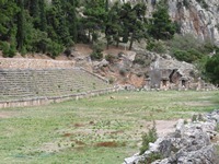 約2キロ離れたデルフィの街をめざす。街に用事がないわけではないけれど、メインはオリエント伯爵の世界遺産を訪ねることである。街までは難なく到着。しかし、世界遺産までは道に迷った…。普通に歩いていれば迷うことはないので、これから訪れる予定のある方は心配しなくてOKです(笑)。面白そうな方に行ったのが敗因でしたねぇ〜。 気を取り直して世界遺産に向かう。無事に到着。なんと、祝日ということで無料だった。約900円も節約したぞ!観光地としての「デルフィの古代遺跡」の評価は、「★★★★☆」である。ここは、「神託」が行われた場所として有名である。それだけではなく、スタジアムも良かったし遺跡自体も今までとは違って斜面に位置していて興味深かった。