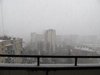 そういえば、キエフで「お金拾い詐欺」にあった。相手にしなかったので被害はなかったけどね!あるんですねぇ〜実際に!!!でも、あんな詐欺には、引っかからんでしょ(笑)。だって、額がデカすぎるもん。ドル札とユーロ札が、ビニール袋にたっぷり入っていた。あの金額を見れば、どんな人でも「うんっ?おかしいぞ!」って思うよ。 問題なのは、「お金拾い詐欺」ではなく“雪”の方だった…。Ayaさんに聞くと初雪とのこと。にもかかわらず、降る、降る、降る、降る…。瞬く間に、地面は黒から白へと変化を遂げることとなった。こりゃ、降りすぎでしょ(笑)!