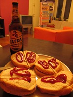 そんなことを考えながら宿に戻る。晩飯は、宿のオニイちゃんの真似をしてホットサンドを作ってみた。この宿、キッチンがあるとのことだったのに、実際にはなかった。使えるのは、電子レンジとホットサンドを作る機械のみ。 シャワーの排水機能は、いままでの宿の中でワースト十指に入るほどのひどさ…。インターネットは接続できず、回復のための努力をするわけでもない。 この宿、「クラクフ 安宿」で検索すると最初の方に出でくる。そこのサイトでの評判は、とってもいい。ところが、実際は、そうでもないかなあ〜と思う。1人のスタッフが交代で勤務するスタイルなので、そのときのスタッフによって、サービスの質がガラリと変わるのである。