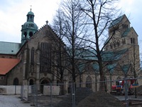 まず向かったのは聖ミカエル聖堂。うん、教会だ。内部はクローズだった。次に向かったのは聖マリア大聖堂。うん、教会だ。しかも、修復中だ。もちろん、内部はクローズだった。 え〜っと、これにて、ヒルデスハイムの観光は終了。世界遺産といっても2つの教会だけなので…。観光地としての「ヒルデスハイムの聖マリア大聖堂と聖ミカエル教会」の評価は、「★☆☆☆☆」である…。内部に入れなかったり、修復中だったりという悪条件に加えて、オリエント伯爵にとっては、まったくもって普通の教会にしか思えなかった。