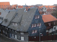 ヒルデスハイムを後にして、ゴスラーへと向かう。ドイツでの列車移動は、とっても簡単である。駅のあちこちに、詳しい時刻表が貼りだされているのが大きな理由である。 ヒルデスハイムとは違い、ゴスラーは街が世界遺産になっている。そんなわけで、テクテクと歩くことにした。壁や屋根が、黒っぽい石の瓦で覆われているのが興味深い。確かに、今まで、こんな街は見たことがない。神戸の「うろこの家」(←知ってますか?)がいっぱいある感じだ。 観光地としての「ランメルスベルク鉱山と古都ゴスラー」の評価は、「★☆☆☆☆」である…。珍しい街並だけれど、一度見たら、もういいかなあ…。もしかすると、“カテゴリー1”はランメルスベルク鉱山の方なのかもしれない。