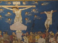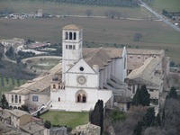 バスはアッシジの旧市街に到着。現在の中心地からは5キロほど離れている。バスを降りて、帰りのバス時間を確認しようとする。しかし、なぜか時刻表を発見することができず。近くのインフォメーションのオッちゃんは、不親切で教えてくれなかった。 なんとかなるだろうと、アッシジの旧市街へと向かうことにする。まず訪れたサン・フランチェスコ聖堂で圧倒されてしまった…。なんなんだ、この美しさは!!!そのへんの美術館の中には、看板を下ろさなくちゃいけないところが続出だよ。 いやいや、ホントに美しかった。内部は撮影禁止だったのが残念だったなあ〜。マナーの悪いヨーロピアンは撮ってた人もいたけどね。オリエント伯爵は、素晴らしさに圧倒されてしまった感じ。でも、外部から内部を少しだけ…。