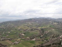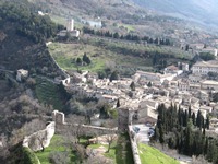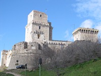 サン・フランチェスコ聖堂を十分に堪能したオリエント伯爵。一応、地図を写真に撮っておいたんだけど、相変わらず役には立たない(笑)。もう役に立たないのを前提にしているので、観光の時には怒る気にもならないどころか何も感じなくなっている。宿探しの時は困るんだけどね…。だから、最近、この本の地図は使っていない(笑)。 気づけば、街の反対側のサンタ・キアーラ教会に。ここらかの風景は、なかなかのものだった。ただし、この後に、とんでもない風景を見せてくれる場所に行くことになる…。 街を引き返すことにする。もちろん、同じ道を通るほどアホではない。まずは、サン・ルフィーノ大聖堂に寄ることにする。大聖堂といえば、その街の中心となっている聖堂が多いのだけれど、この街では確実にサン・フランチェスコ聖堂にその座を譲っている。 ここから、大城塞の姿を見ることができた。なんとも、素晴らしい姿である。もともと“城好き”のオリエント伯爵。速攻で、訪問決定。とりあえず、大城塞のある方角へと歩いていくことにした。