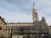 朝起きて、身支度を整えて、モデナの街へと向かう。ここモデナにもオリエント伯爵基準の世界遺産があるのだ。街の中心部まではあっという間に到着。 早速ですけれど、観光地としての「モデナの大聖堂、市民の塔とグランデ広場」の評価は、「★☆☆☆☆」である…。イタリアに入国以来、初めてつまらんと感じた。 ちなみに、モデナの大聖堂は修復中で内部に入ることはできなかった。しかし、もし内部に入ることができたとしても、あまり評価が上がるとは思えない。 市民の塔は冬季間はクローズ。こちらも、入ることができたとしても、評価が上がるとは絶対に思えない。なぜならば、まずはグランデ広場がつまらない。例えばシエナの広場に比べると「???」である。更に、モデナの街自体がつまらない。どこにでもあるような、これといって特徴のない街なのである。