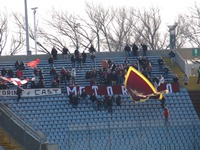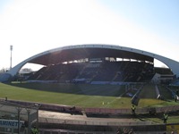 時間になったので、いよいよスタジアムに向かうことにする。イタリアのサッカー観戦ってどんな感じなんだろうか?凄い盛り上がり方をするに違いない!!! あれっ?歩いている人、少ないよ…。宿からスタジアムまでは、歩いて30分くらい。日本ならば、スタジアムから徒歩30分圏内ともなれば、試合のある日はユニを着た人を必ず見かけるものである。しかし、昨日の閑散とした景色となんら変わらない…。 「試合、ホントにあるのかな〜」という思いを抱きつつ、スタジアムへとテクテク歩いて行く。ついにスタジアムが見えてきた…予想に反して、静かなものである。時間はキックオフまで1時間を切っている。日本ならば、両チームのサポーターはすでに盛り上がっている時間である。