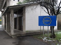 ゴリツィアの街は、第二次世界大戦の結果、国境線が引かれて二分された街。もともとの街の中心はイタリア側で、スロベニア側は新しい街なんだそうだ。 ゴリツィアとノヴァ・ゴリツァを結ぶ公共交通機関はあるのかもしれない。けれど、歩いて行くことにした。ちなみに、1時間ほどの所要であった。けっこう、疲れたなあ…。 思えば、国境を歩いて越えたことはあったけれど、それはイミグレーションからイミグレーションまでの間を歩いたということ。国境地点まで歩いて行くのは初めてである。まあ、国境といっても、スロベニアもシェンゲン加盟国なので、ノーチェック。昔の国境の名残が残っているだけであった。
