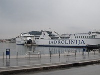 バスはクロアチアの細長い西部を南下していく。といっても、ハイウェイを走っているわけではないので、クネクネとした海岸線をたどっていく感じ。曇り空で太陽が顔を出さないので、方向感覚が麻痺してくる。 途中、桜の花を発見!!!なんか嬉しくなる。そして、「ああ、日本人なんだなあ〜」と実感する。数多くある中の、たった1つの花なのに、特別な感情を抱かざるをえない。日本離れて長いしねぇ〜。 空模様は好天の兆しなし。それどころか、雨が降り出してきたようだ。スプリト(Split)という大きな街で15分ほど小休止。バスを降りて煙草を吸っていると、宿の客引きにあった。おお、久しぶりの体験。スプリトの港には、大きなフェリーが何隻も停泊していて、海の交通の要衝であることが分かる。後で調べてみると、陸の交通の要衝でもあった。 ちなみに、スプリトの街は世界遺産である。しかし、オリエント伯爵基準ではないので立ち寄らないことにした。正直、魅力的な街なのだろうと思う。残念である…。