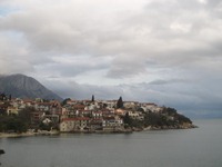更に、バスは南下していく。道路は、けっしてイイ道とはいえない。けれど、景色は素晴らしい。小雨が降り続いているのが残念。と思っていたら、雨が止んだようである。時折、陽ざしもさすようになった。 それにしても、アドリア海の風景は、驚くほど美しい。海も透き通っている。なんたって、はるか眼下に見える海面を越えて海底の様子が見えるほどなのだ。