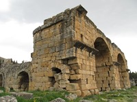 この世界遺産が更に興味深いのは、パムッカレの台地の上部に古代ローマ帝国の遺跡が残されていることである。その遺跡はヒエラポリス遺跡と呼ばれ、温泉保養地として栄えたようである。