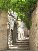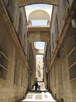 そうこうしていると、偶然に「ヴィア・ドロローサ」の「留」の場所に出てきた。ヴィア・ドロローサとは、イエスが十字架を背負って歩いた道であり、刑場となったゴルゴダの丘まで続いている。実際には、イエス時代のエルサレムは破壊されており、本当に同じ道を歩くことは不可能である。まあ、そのあたりは宗教なので、「信じる者は救われる」といったところなのだろう…。