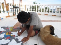夕方、MIさんが、こちらの宿に移ってきた。退屈だった日常が、少しづつ変化していく予感がする(この予感は、いろいろな意味であたっていたようだ…詳細は後ほど)。その後は、日本食レストランで、Tashiさんの描いている絵なんかを見て時を過ごす。