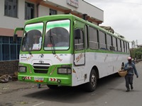 初めて利用するエチオピアの正規バス。乗務員のオッちゃんは、わざわざシートを教えてくれる。ミニバスよりも座席感覚が広い。とりたててボロイとは感じない。あれっ?高い金だしてミニバスに乗る意味ってないんじゃないの???