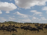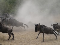 ここで、興味深いシーンを見ることができた。ヌーが集まり、1匹ずつ崖を駆け下りていく。ヌーには移動する性質があるようで、こうして群れが動いていくのだと感じることができた。で、なにかに驚いたのだろう。今度は、一斉に崖を駆け登ってきた。その様子は、巻き込まれたら死んでしまうこと間違いなしというくらいの迫力だった。
