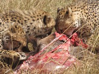 続いては、なんと、チーターの食事風景に遭遇。そうとうに腹が減っていたのか、かなりの勢いでがっついていた(笑)。ハンティング風景は見られなかったけれど、食事風景を見られただけでも、なかなかにラッキーだと思う!!!