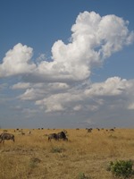 この日も草食動物からスタート!ヌーにシマウマにインパラ。そして、キリンとゾウとバッファロー。木の上には、ハゲワシも発見。その後、他の車がスタックしているのを助けることに。このとき、サバンナに降り立つことができた。青い空に白い雲が浮かび、爽やか風が吹き抜け、どこまでも草原が広がり、そのなかに点在する灌木。まさに、サバンナ!!!