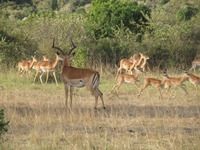 そうとうに公園の奥まで来たことになる。ボチボチ、ゲートへと戻る時間になったようだ。帰る途中でも、ダチョウを見ることができた。もちろん、ヌーやシマウマやインパラは、いたるところで見ることができた。