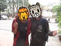 で、ふと外を見ると、なんとミッチーさんがいるではないか!!!衝撃の再会、ナイロビのタウンにて!!!おそろしいまでの偶然である。話を聞くと、サファリ・ツアーの予約を終えた後らしい。更に、KmEさんとオリエント伯爵が適当に選んだこの店は、Kekeさんのお気に入りだったそう。26日に、ミッチーさんは、KekeさんやYuskさんと再会し、この店の存在を知っていたようなのだ。ホンマ、おそろしいまでの偶然だ。
