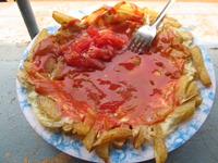 昼になったので、体調回復の様子を見極めるために行動を開始する。まずは、昼食である。長期滞在をするならば、良い食堂を見つけることは必須条件となる。もちろん、キッチンが付いていれば最高なのだけれど…。1つの店(?)にて、チップス&エッグを食べることにした。まあ、イイ感じであった。