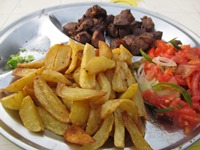 そうそう、オリエント伯爵の旅は、こんな会話をしながら続けられていたんだった。すると、出てきたプレートは、左の写真のとおり、ベリー・ナイスなものだった!!!帰るときに、「今まで何回もヤギ肉を食べたけど、今日のがナンバー・ワンだった!」とオッちゃんに一言。