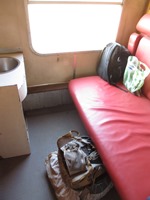 乗ってきたのが22時近かったこともあり、ほどなく、うちらのコンパートメントは消灯。なぜか、この夜には、ピローとシーツとブランケットの支給があった。まあ、支給されたものは、ありがたく使わせてもらうことにしよう。 |