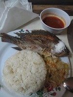 夕食はライスとフィッシュ。この魚、想像した以上に美味かった。焼くという調理法もナイス。塩が添えてあるのもナイス。淡水魚なのかな?にしては、まったく生臭くなかった。また食べたくなる味だった!