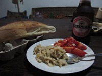 難点は蚊が無茶苦茶に多いことかな~。マプトでも「蚊が多くなったなあ~」って思ったけど、ここはマプトを遥かに凌ぐ蚊天国(笑)。ベッドには、しっかりした蚊帳があったので心配していないけど、この日記を書いているのは外ということで、絶え間なく蚊が襲ってくる。それでも、この宿は最高だ~!!!!! |
