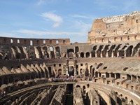 続いて向かったのはコロッセオ。ここも行列ができていた。最後尾に並ぶ。コロッセオに入場する際に、入口が2つに分かれているのを発見。誰も並んでいない入口には「チケット・ホルダー」って書いてある。コロッセオはフォロ・ロマーノと共通券のため、オリエント伯爵はチケット・ホルダー。「なんだ、並ばないで良かったんだ~」って思いながらコロッセオ内部に。いやいや、コロッセオの外の行列なんて可愛いものだった。コロッセオの中にも長い長い行列ができていた。良かった、先にフォロ・ロマーノに行っておいて!